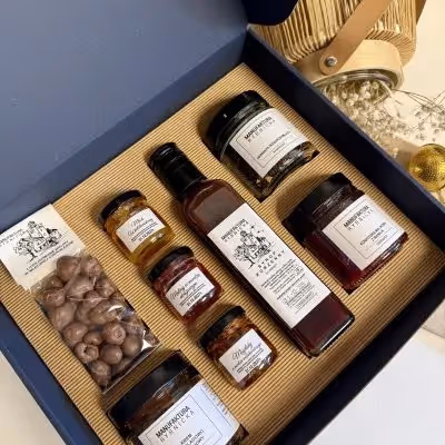 W stałej ofercie w naszej konfitury, owoce w czekoladzie i miodzie, bakalie i zestawy prezentowe.